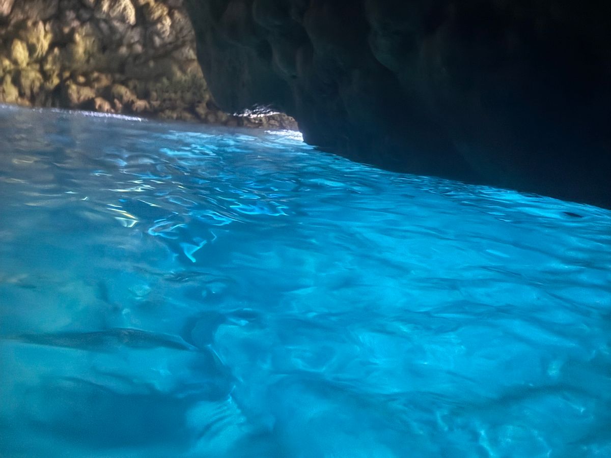 青の洞窟ではとても神秘的な空間であり、移動までのうみでは、たくさんのお魚がすぐ近くを泳いでいてとても感動しました!