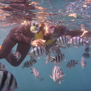 水中に潜ると最初は呼吸やカラダの不安定さに例えようもない不安感ありますがすぐに消えて、終始お魚天国で楽しかったです。