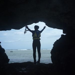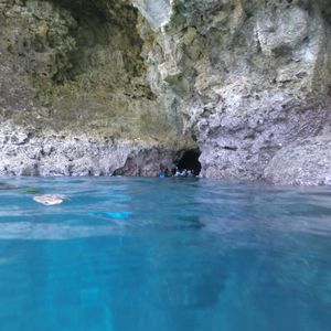 入り口についたら順次海に飛び込んで、インストラクターさんと洞窟に向かいました。インストラクターさんが浮輪を持って誘導してくれたので、安心して洞窟までいくことができました。泳ぎに自信が無い方も浮輪の紐を持っていればインストラクターさんが連れていってくれる感じなので安心だと思います。
