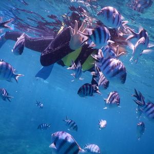 水の中では色々な魚が近くにいて