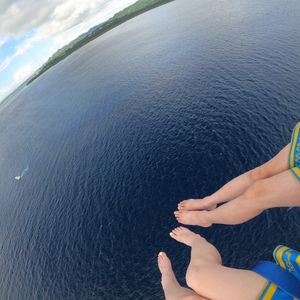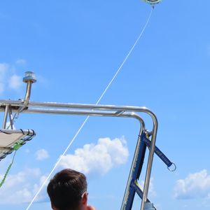 4歳と7歳の子供と参加しました。2人とも初めてで最初は怖がっていましたが、結局すごく楽しんでいました!自撮りできるカメラも貸してもらえて、良い写真が撮れました◎飛んでからも船と連絡がとれるように、トランシーバーをつけてもらえて安心でした。