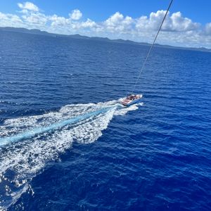 初めてのパラセーリング、思った以上に怖くはなく上空からゆったりと景色を眺めることができて楽しかったです。ゴープロで写真も撮ってもらえます。