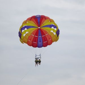 天気にも恵まれ、とても気持ちいいパラセーリングでした。ゆっくりと空を漂うような感じで、風が気持ちよく、水平線がとてもキレイで感動しました。また飛びたいです。