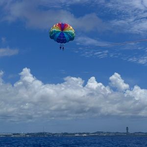 子どもとお爺ちゃんと、4人で行ってきました!。年齢差が大きくあるのに、家族みんなで楽しめるパラセーリングは楽しみでした。当日、下の子は少し怖がっていたのに、いざ飛んだら非常に喜んでおり、空から眺める沖縄の綺麗なブルーの海や、遠くに浮かぶ島など、とても美しく本当に最高でした。家族4人、全員一緒に飛べたことも嬉しかったです。