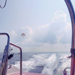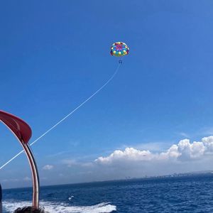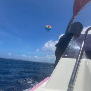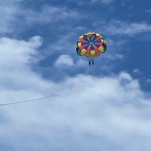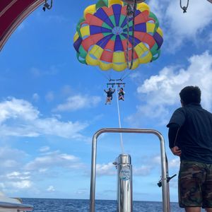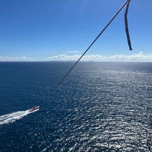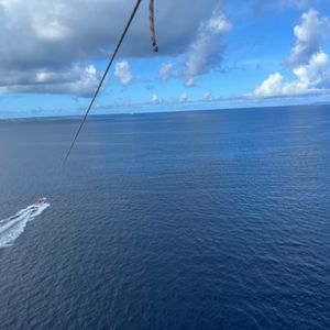 最高のパラセーリング日和の下で、パラセーリングをすることができました。200メートルの高さは初めてだったため、少し不安もありましたがスタッフの方の対応がとても丁寧だったので安心して参加することができました。船の上で流れていた音楽もさらにテンションを上げてくれました。洋服のまま参加したのですが、全く濡れることはなかったため、パラセーリングの後もすぐに観光に行けて良かったです。上から見た青い海、景色には感動しました!