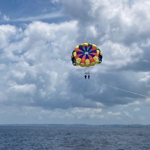 200メートルのパラセーリングをとても楽しみにしていました。想像がつかない高さのため、少し不安もありましたが、いざ上にあがったら最高の景色に不安も吹き飛びました。あまりにも気持ちが良いのでもっと長い時間飛んでいたくなりました。スタッフの方の対応もとても良く、スマホホルダープレゼントや、写真も撮っていただき、サービスも最高でした。濡れることはないので、洋服のまま安心して参加することができます。