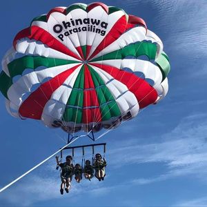 沖縄4日間の滞在で最終日に予約したパラセーリング!スタッフの方々の親切な対応で最高に楽しむことができました。上からの景色は思っていたよりも綺麗で感動的でした。ありがとうございました!