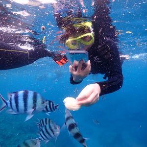 初めてシュノーケリングをしました!最初はフィンやシュノーケルの使い方に戸惑いましたが、ライフジャケットがあるので溺れる心配もないし慣れれば結構快適に泳げます。