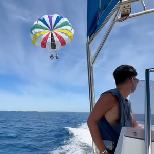 この度はパラセーリングツアーにご参加いただき、誠にありがとうございました。アシスタントを務めさせていただきましたヒューイです。