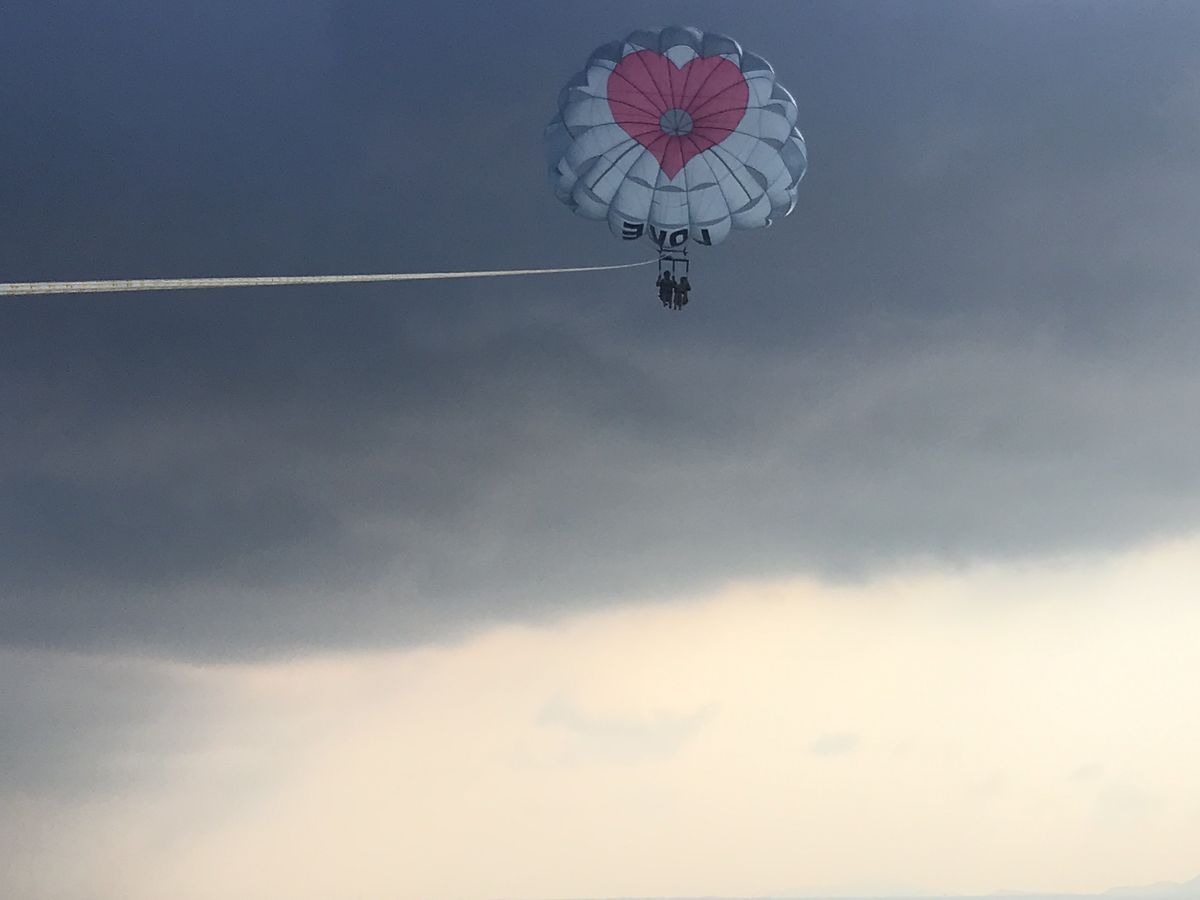 パラセイリングは午前中の方がオススメかもしれません。雲が多くて少し残念でした。