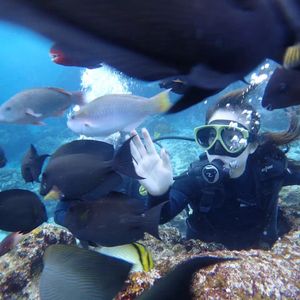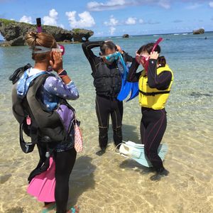 父と二人で参加しました。父は泳げますが私はかなづち。でも、優しい女性のインストラクターさんが丁寧に教えてくださいました。沖縄の青いきれいな海で魚たちと触れ合うことができ、素晴らしい思い出になりました。インストラクターさんが海中での写真もたくさん撮ってくださいました。