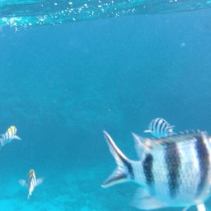 ビーチでのシュノーケリングでは波が高いと砂が舞い上がって魚が見えないことがありましたが、このツアーは沖合でのシュノーケリングですので、多少、波が高くても、魚は見えると思います。