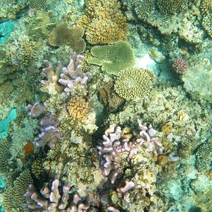 参加者が55名程で大人数のため、シュノーケル時魚より人のほうが多い位で何度も足のヒレで頭や身体にあたられてしまいました。