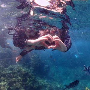 シュノーケルをしている間は雨も降らず、小さなお魚が泳いでいるのを綺麗な海で見ることができてすてきな経験をできました!