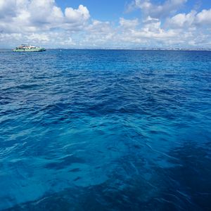 那覇 三重港から30分で手軽に慶良間ブルー・サンゴ礁を堪能できるコースです。ウミガメ探索ツアーは遭遇率5割くらいとのこと。いろいろ体験オプションはありますが初めてだったら普通にシュノーケルだけでも満足できます。実際に海に入ってるのが長くても2時間程度・船は近くに居るので途中休憩も可能です。