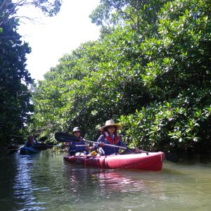 二人乗りのカヤックで川を上ったり海へ出たり、沖縄独特の自然と触れ合える貴重な体験です。