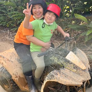 バギー初体験でしたがインストラクターさんが、丁寧に教えてくれたので、安心して楽しめました。丁度雨上がりだったので、水溜りに突っ込んだりして泥だらけに(^o^)Tシャツ、パンツ、長靴を無料でお借りできたので、私服は汚れることなくできました。