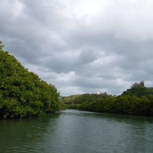 川を遡りマングローブの中を巡り最後に海に出ます。腕が疲れました。筋肉痛になります。