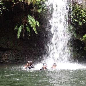 3時間コースで申し込んだのですが、往復で2時間程度はリバートレッキングをでき、滝に打たれたり、滝つぼに飛び込んだり、子供たちも大人も楽しむことができました。