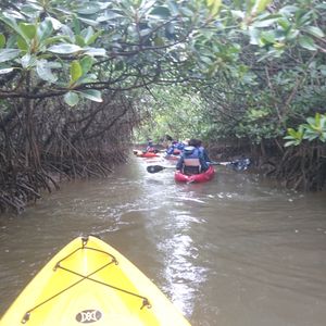 家族と息子の誕生日のために数人の子供たちを連れて行った素晴らしい旅行でした。旅行はマングローブの木々の中から始まり、野生動物を間近で見ることができました。ガイドのユミさんは生態系について非常に詳しく、素晴らしい情報を提供してくれました。彼女は英語もとても上手でした。マングローブを出て湾に移動し、カヤックから飛び込んで少し泳ぐことができました。最後にオープンオーシャンについてもう少し話し、出発地点に戻りました。