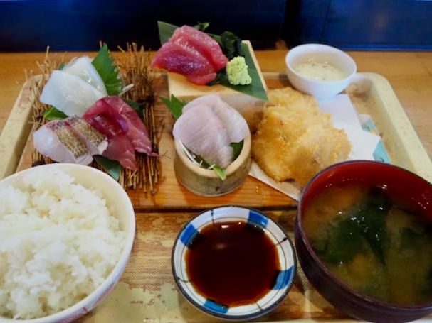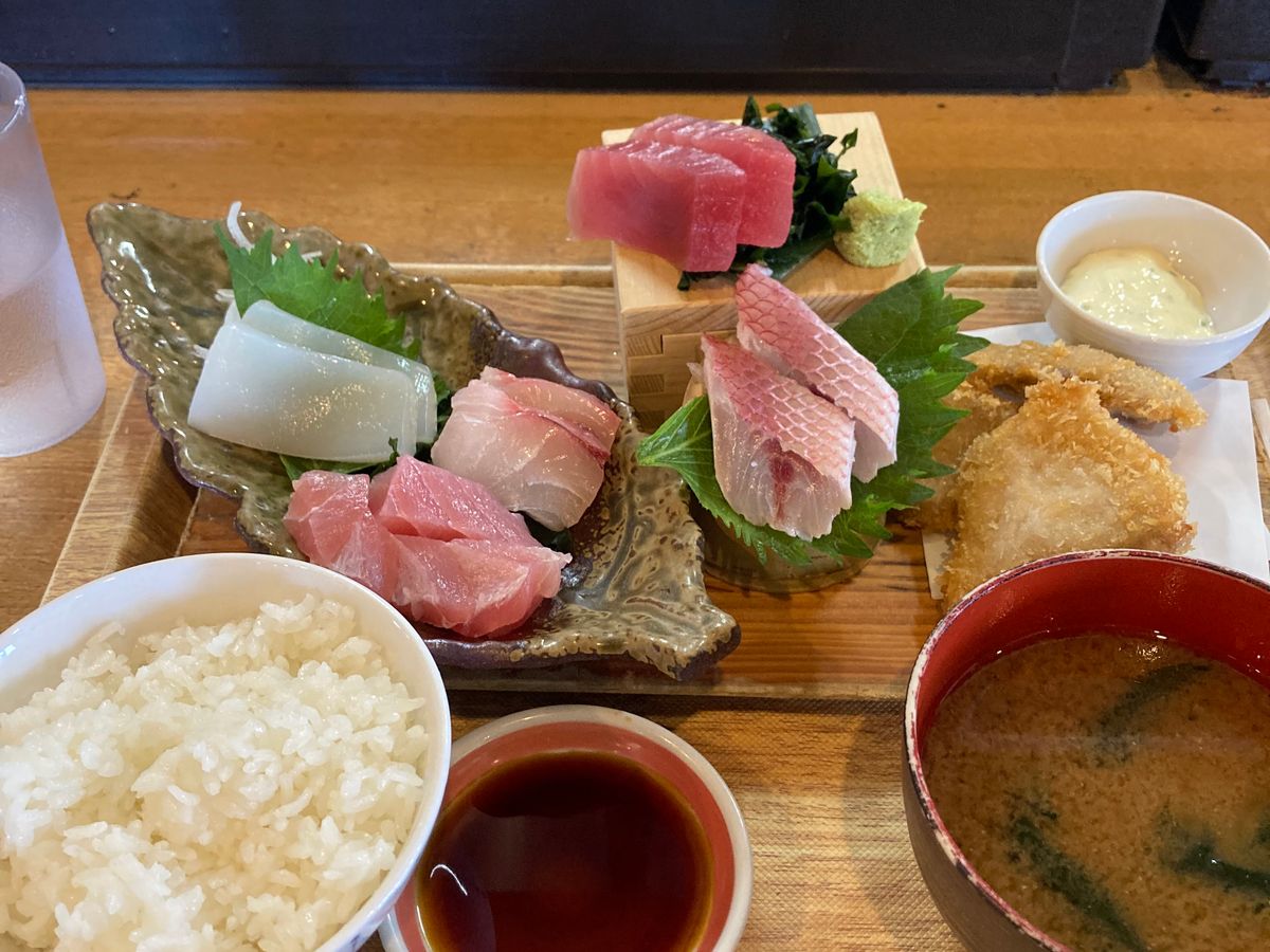 お昼は人気のお店でおいしいお刺身やフライをいただけて大満足でした。