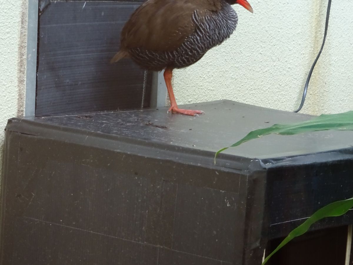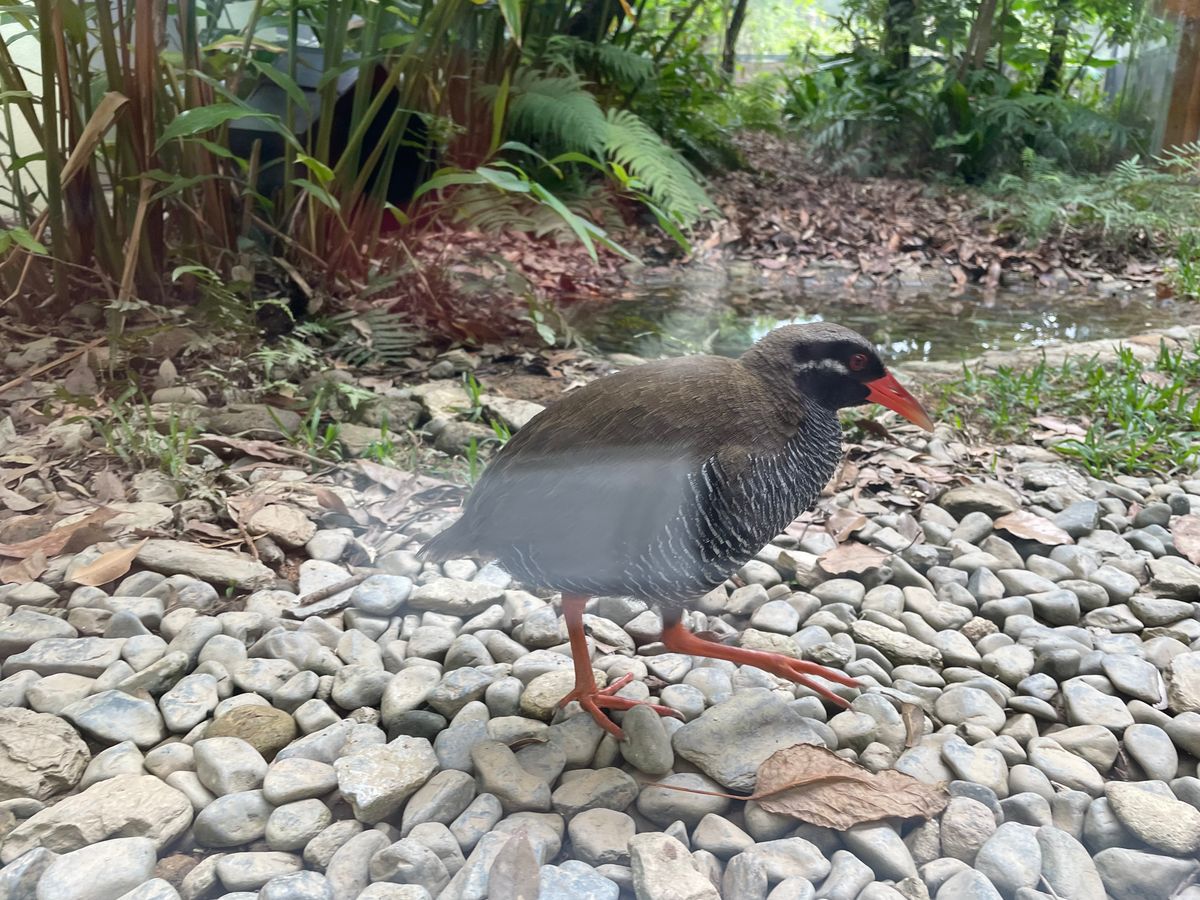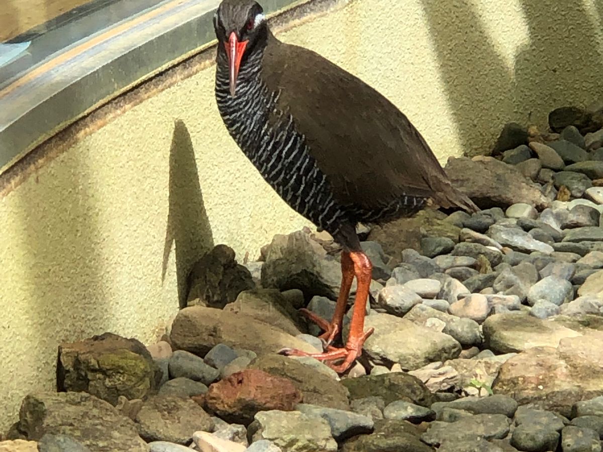 ヤンバルクイナの生涯展示学習施設に人工孵化されたヤンバルクイナのクーちゃん、観光客に慣れすぎてカメラの前を歩んでくれる♪
