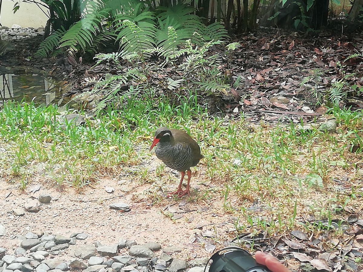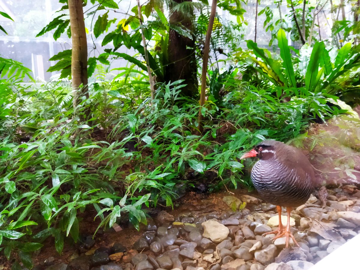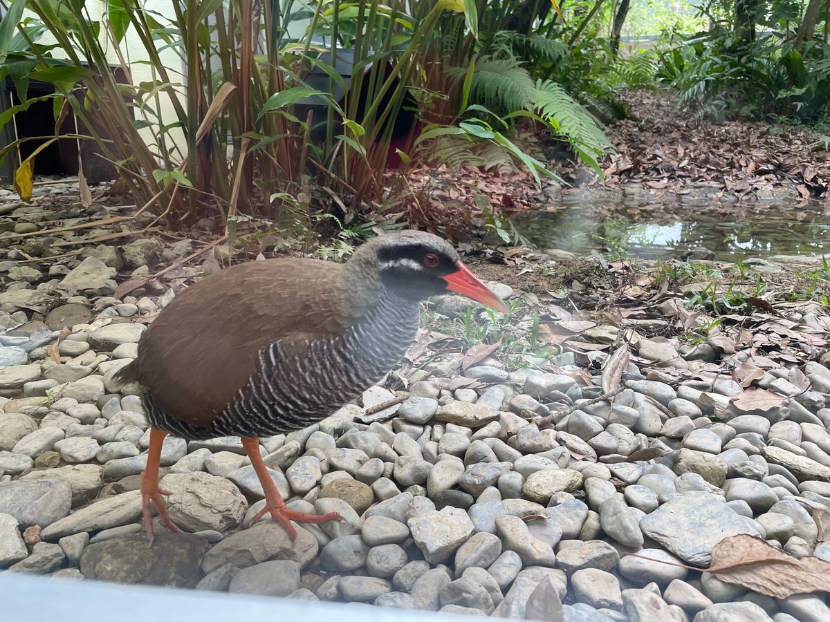 ヤンバルクイナの生涯展示学習施設に人工孵化されたヤンバルクイナのクーちゃん、観光客に慣れすぎてカメラの前を歩んでくれる♪