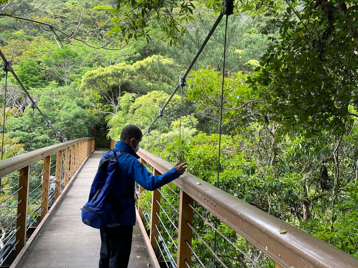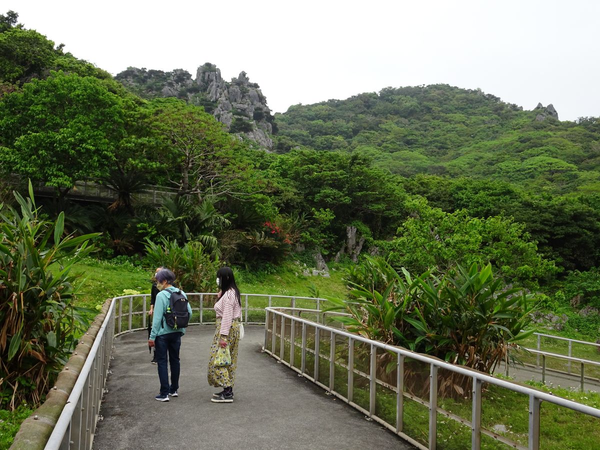 やんばる北部、初の独りバスツアーで、当日は曇り空ぽつぽつ雨の中不安ながらの参加でしたが、最初の添乗員さんの底抜けに明るいご挨拶に心も解れ、イヤホンで所々聞く案内も勉強になりました。添乗員さんの臨機応変なご対応で、マングローブの遊歩道、ルート58と大石林山のツーショット、お昼ごはん(ここだけ大雨)、辺戸岬(絶景)、そして大石林山では奇岩、森林、海を眺めながら、足に自信がない私でも全てのコースを廻ることができました。