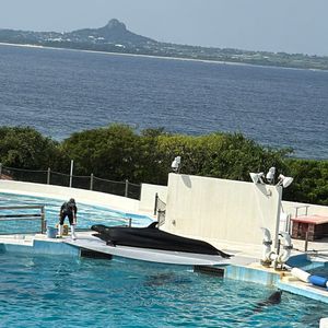美ら海水族館でイルカのショーを観ました。もう少し時間があれば良かったのにと残念です。