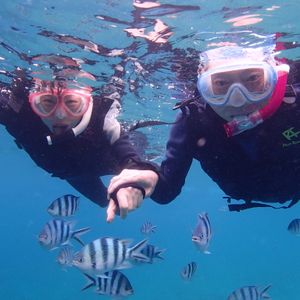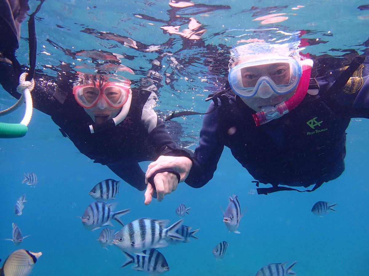 海面に顔をつけた瞬間、きれいなサンゴ礁が広がってて初めての光景に感動しました!