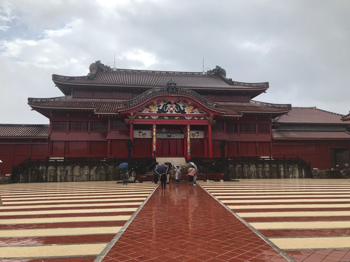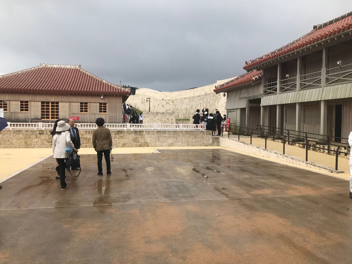 あいにくの雨でしたが、首里城の内部の見学。係り員の方が質問に答えてくれました。首里城は丘の上にあり那覇の町を見渡せます。雨の合間にうまいこと町の景色の写真を撮れました。