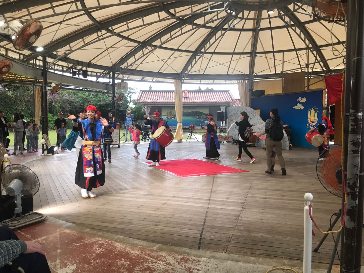 その後沖縄ワールドに向かいます。最初に鍾乳洞の玉泉洞を見て、食事をして、スーパーエイサーの公演を観ると時間いっぱいでした。