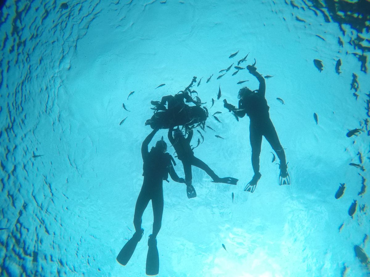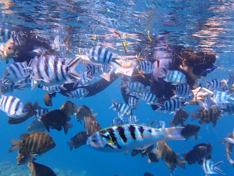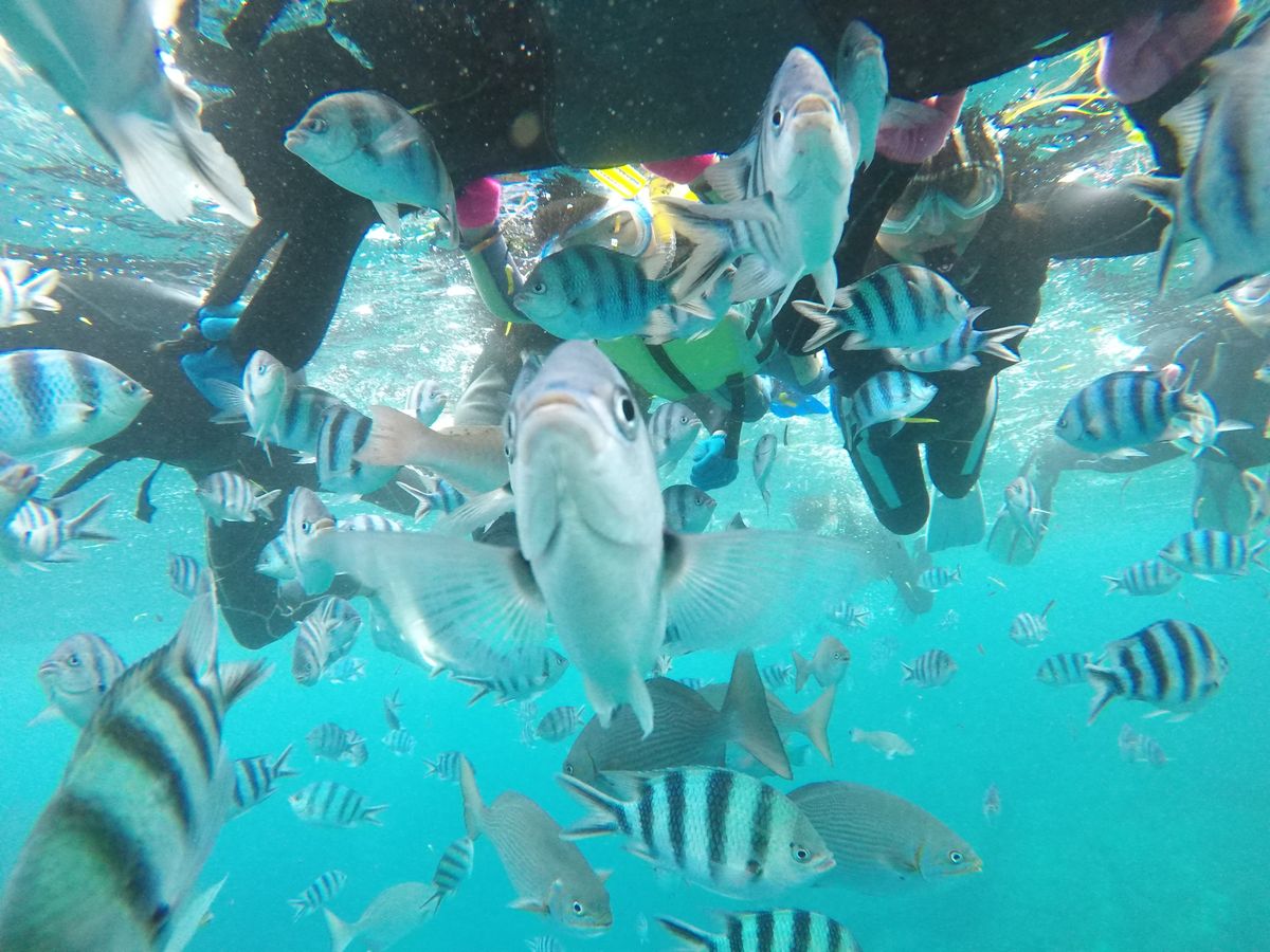 海に入ったら、こんなに魚が近いの?!というくらい近く、餌やり体験では指が食べられてしまうのではと思うくらいに、お魚さんの食い付きがよくて怖楽しかったです。青の洞窟もキレイでした。