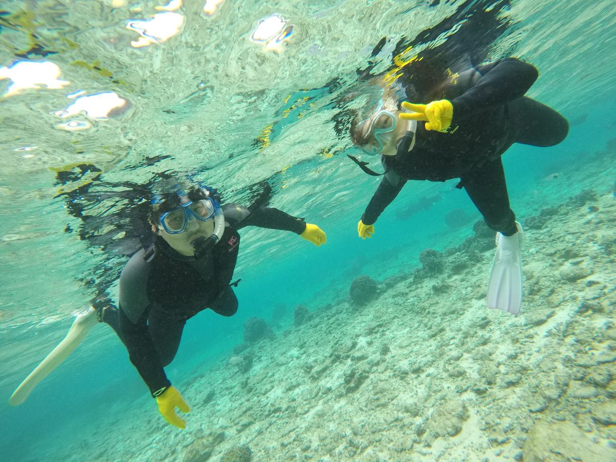 天候のために近所でのシュノーケリングになってしまったのが残念でした。でも妻がシュノーケリング初めてだたので結果的に浅瀬でのシュノーケリングで良かったです。インストラクターの人も優しく教えてくれました。
