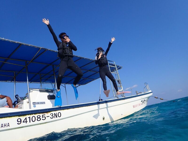 10月21日に家族で参加しました。波が高く、残念ながら青の洞窟には行けなかったため、沖に出てのシュノーケルになりました。ショック、、という気持ちも初めのうちだけで、海に入ってみると信じられないほど透き通っていて、沢山のカラフルな魚たちが出迎えてくれます。各グループに1人のスタッフが専属で付いてくれ、安全に、かつ楽しくシュノーケル出来ました。写真も様々なカット(出発前、船から海へ降りる瞬間、シュノーケル中、魚などなど)を撮影してくれるので、1枚目から見返すとその日にあったことが鮮明に思い出せます。次いつ沖縄に行くか分かりませんが、その時はリベンジしたいと思います!