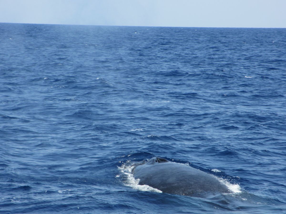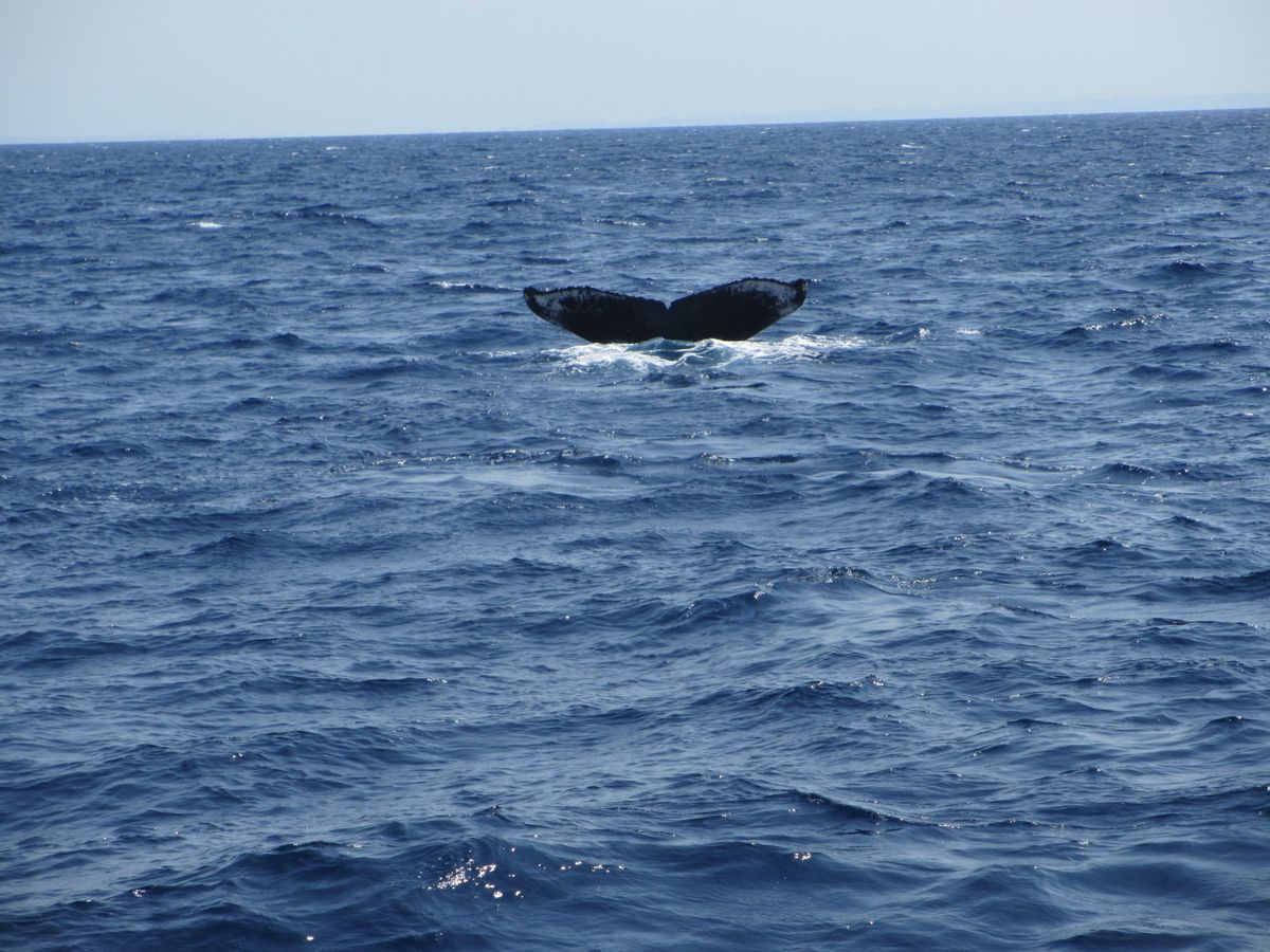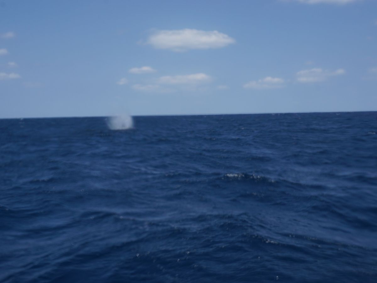 3月下旬で心配しでいましたが、心配は不要でした。ホエールウォッチングの時間は1時間と決まりがあるようですが、その1時間、十分にクジラを見ることができ、船内は大歓声でした。私たちが見れたクジラはのんびりさんかつサービス旺盛のようでゆっくり泳ぎ何度も海面に出てきてくれました。私は2階のデッキから見たのですが、船から左前10メートル位先に大きなクジラの影が見えるではないですか。近くで見ると本当に大きいです。そのクジラと並行して船を走らせガイドさんの「もうすぐ上がってくるよー」の声の後、本当に海面から姿をみせてくれました。この瞬間はビデオに収めたのですが肉眼で見ながらの撮影でしたので、ずれてクジラの一部しか撮影できていませんでした。その他はタイミングがずれていますが写真を撮りましたので、一部を紹介します。