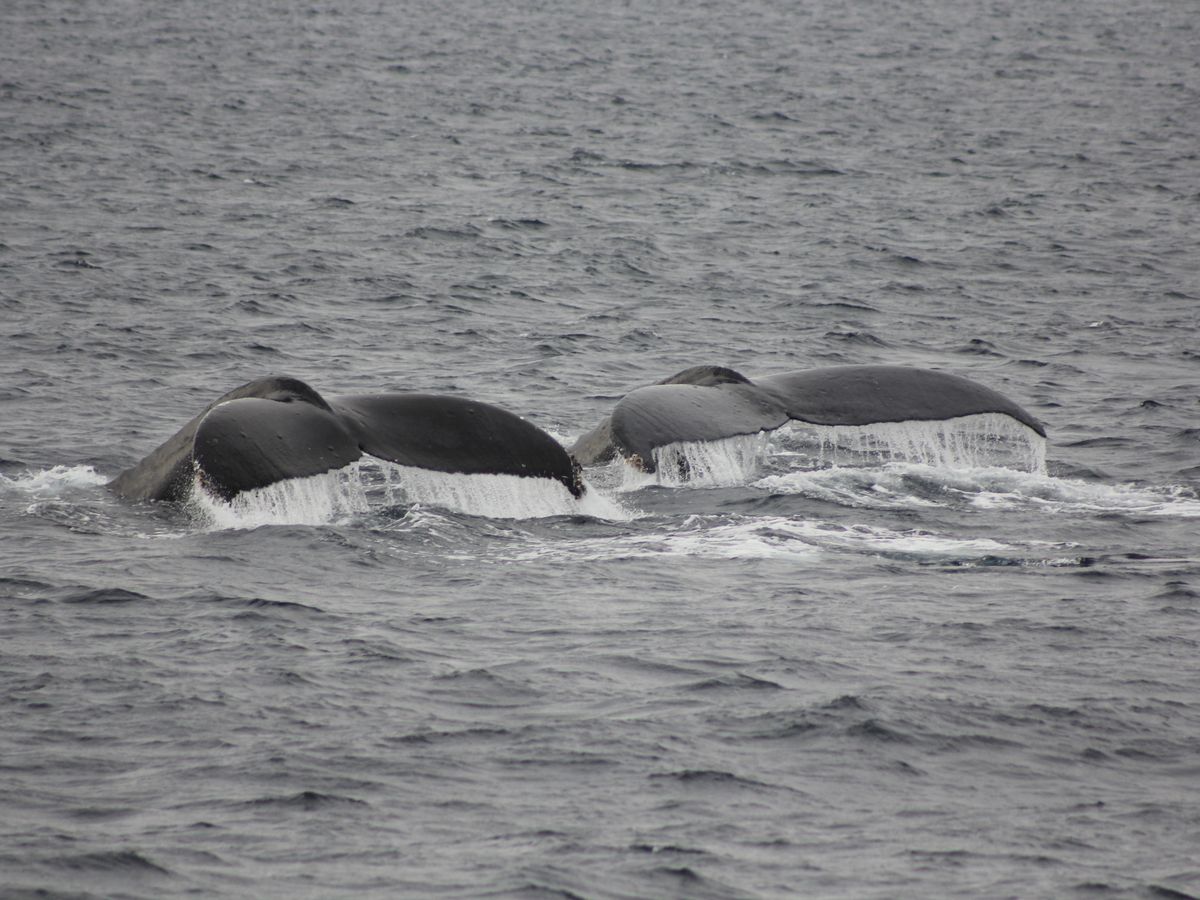 二頭のくじらがブローと尾をバタバタしている姿を何度も見ることが出来ました。