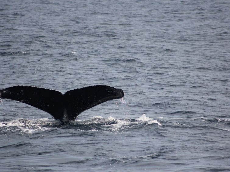 普通尾びれを上げて潜るとしばらくは海面に浮かんでは来ないようですが、何度も何度も海面に浮かんでは尾びれを上げてくれました。
