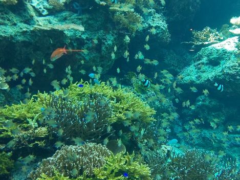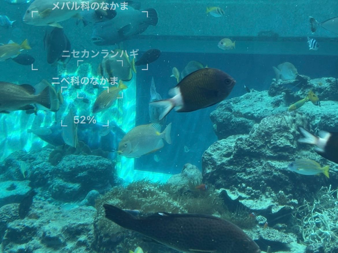 アプリをダウンロードしてかざすとAIで魚名を出してくれるアプリがありますが、美ら海水族館アプリとは別なので二度手間になり、混雑しているのであまり余裕がありませんでした。