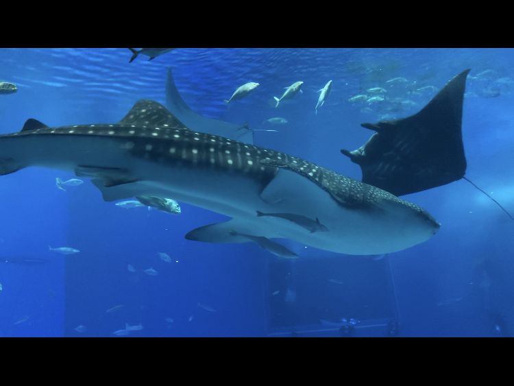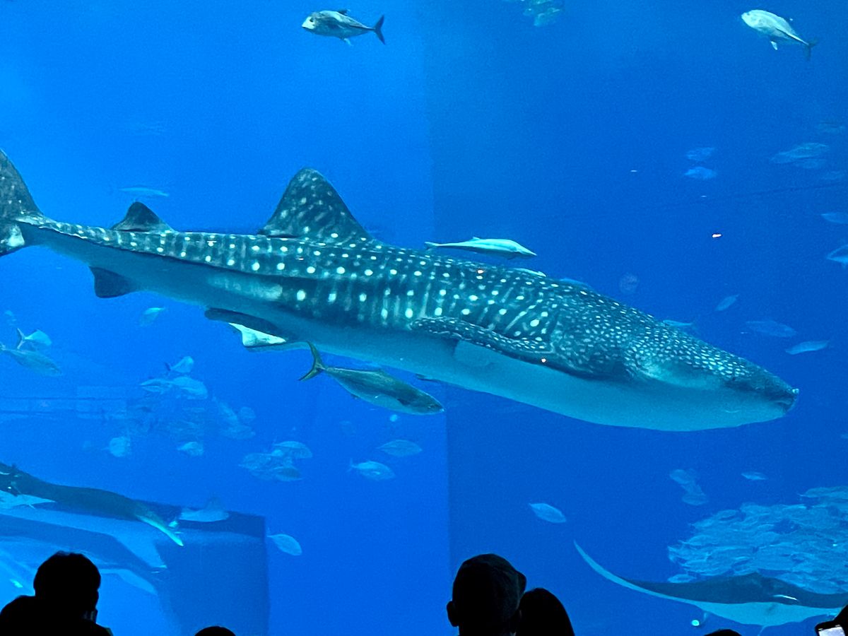 美ら海水族館:ジンベイザメの大きさに口を開けるばかりです。
