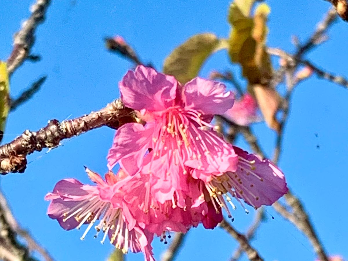 美ら海滞在時間もしっかりあったし、ガイドさんからカンヒザクラが咲いているのを教えていただいて、御菓子御殿のところで写真を撮せました。