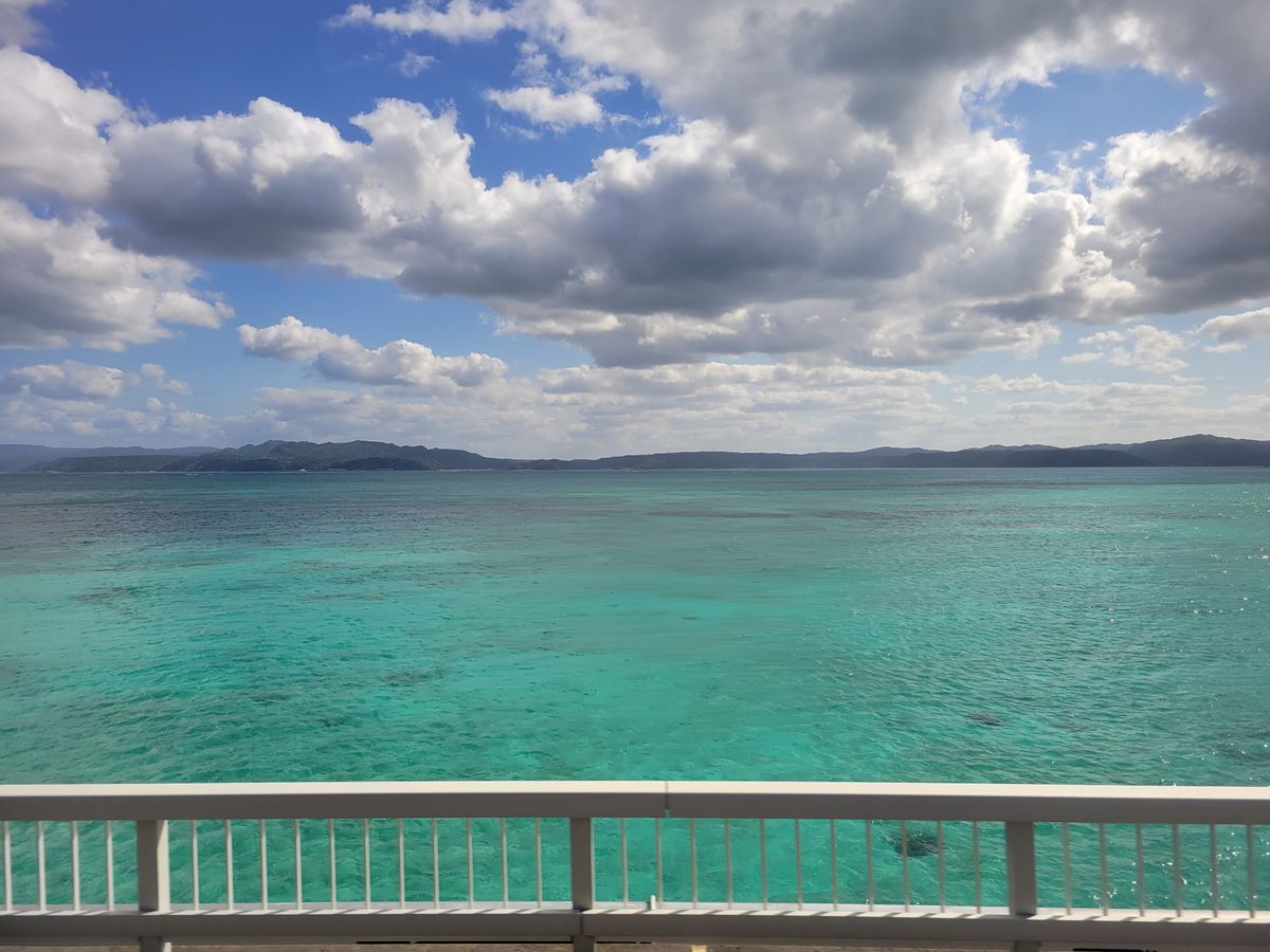 古宇利ビーチでは風が強くて、あまり長く砂浜には居られずに残念でした。軽石の影響もあり、綺麗な白い砂浜では箇所もあったけど、思ったよりは軽石の影響は少ない状況でした。これも、自然現象ですし、記念になると思えば、悪くないかも。万座ビーチのサブマリンは波が荒く、運航中止でこれまた残念でしたが、代わりの恐竜パークは期待していなかったが、意外と楽しめました。美ら海水族館では、昼食を食べる時間がなくなる程、ゆっくりと鑑賞することができました。美浜アメリカンビレッジでは、夕暮れの海とクリスマスの夜景が素敵でした。