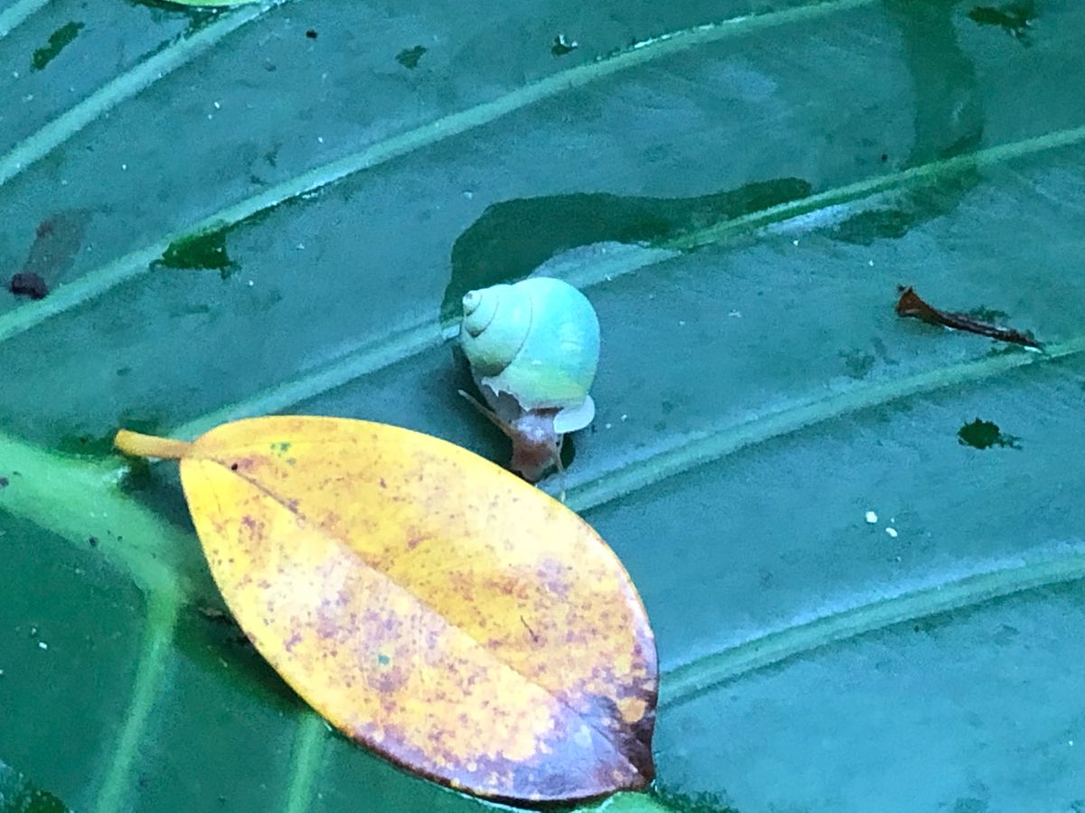 緑色のアオミオカタニシも雨だからこその出会いです。