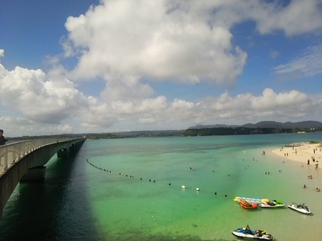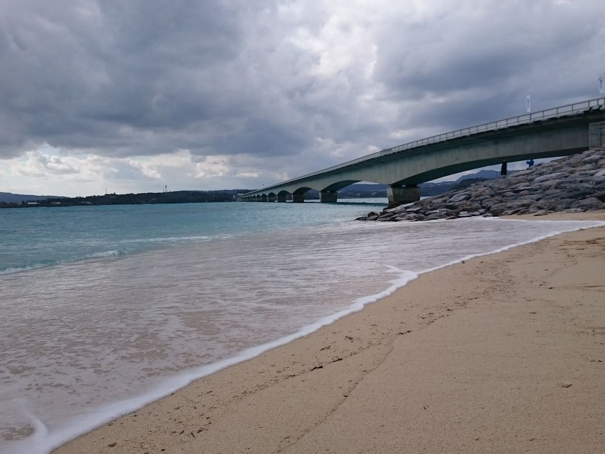古宇利島はビーチから見る景色も橋の上から見る景色も美しいですよね!暖かい時期にいらした際は、ぜひ、少しだけでも脚をつけていってください。