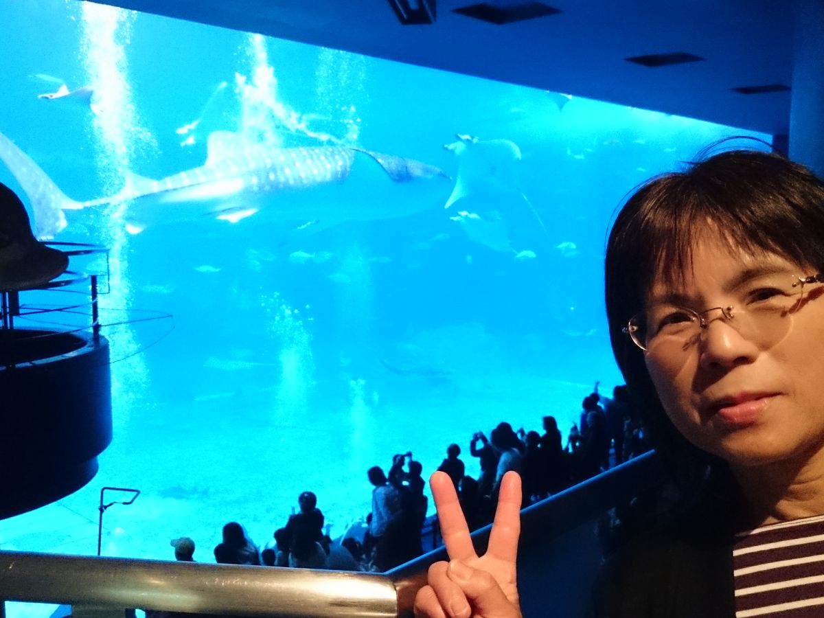 美ら海水族館やイルカショー「おきちゃん劇場」は涼しく、また生き物好きの私たちにはとても楽しい時間となりました。