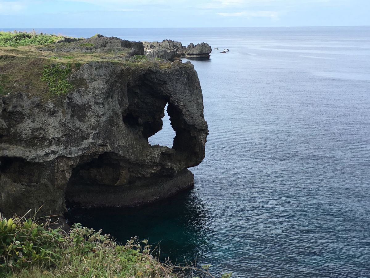 万座毛はとても風が強いです。私が参加した日は暴風雨で観光どころではありませんでした。