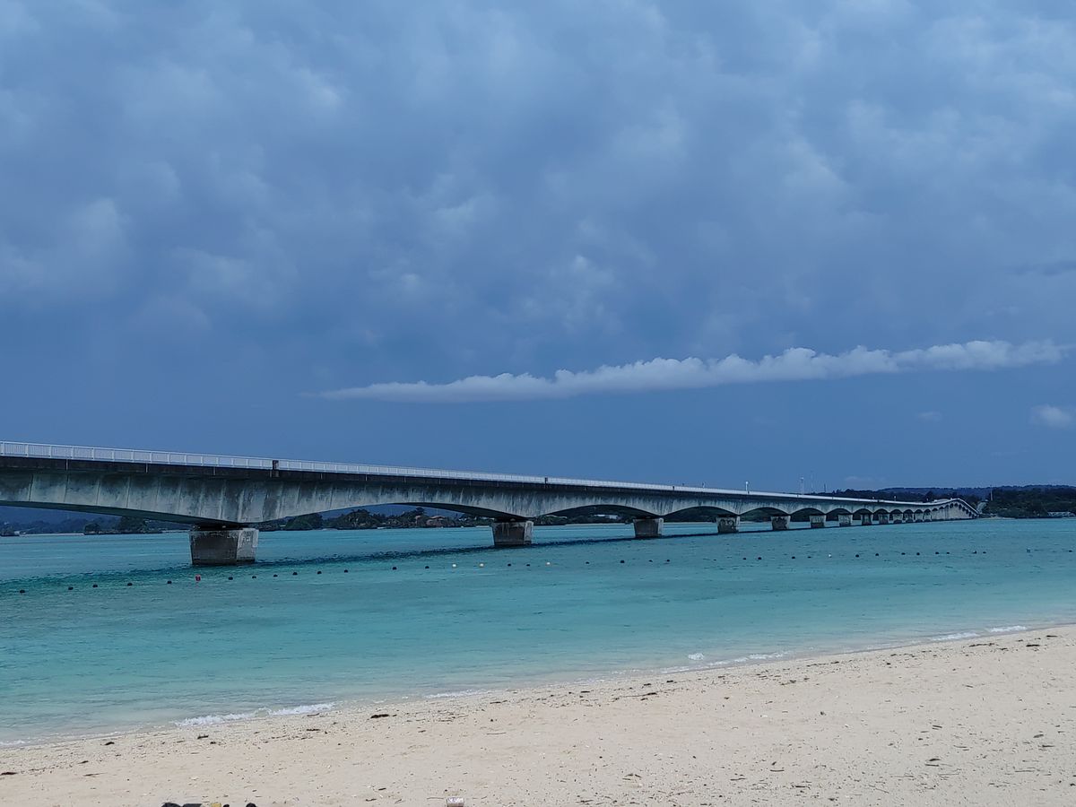 晴れていれば、車窓からでもカメさんが泳ぐ姿が見られるほどの透明感あるところらしいです。開通以来、今帰仁村(なきじんそん)と屋我地島(やがじしま)・古宇利島(こうりじま)をつなぎ、島民の生活路線として大活躍。景色も構造も見応えがあります。