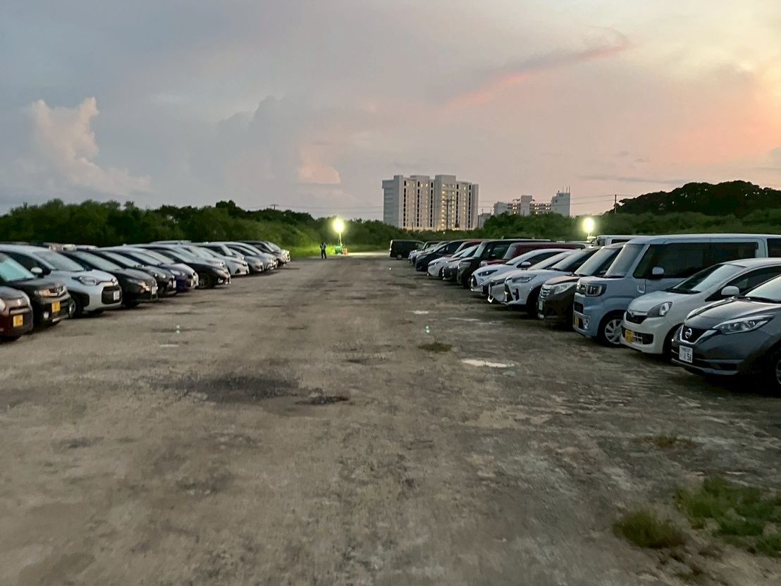 花火開始の5時間前に到着してるが、車は長蛇の列で臨時駐車場も帰る人の車が出るのをみていたのに長蛇の列を停止させないというスタッフさんで車が停めれず、同じ道をグルグル3週してと駐車場には入れず。花火大会会社30分前だというのに有料も無料も車が止めれない。ちぬまんという沖縄料理屋さんの駐車は満車だが1台だけならということで敷地内3000円という高額な駐車場に停めれましたが、約4時間も駐車できないので運営に電話しましたが、会場目の前で車が停めれない理由なら観覧席のチケットも返金出来ないという回答でした。あくまでも観覧席チケットのみでも無料観覧席の人が普通に駐車場に停められる&観覧席も近いしチケット購入しなきてもよかったんじゃないの?と思いました。臨時駐車場もチケット優先とか少しにしてもらえたらと次も購入して行きたいが、お金払ってまでの価値はありませんでした。