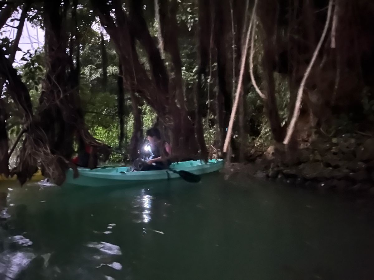 ナギンネム、ガジュマルやマングローブのなかを漕いだり、コウモリ等色んな動物の鳴き声も聞けたり、ナイトツアーならではの体験がてきました!