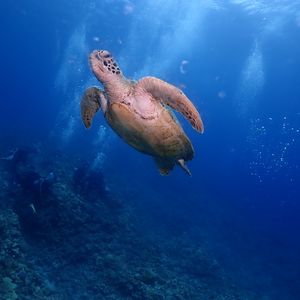 ウミガメがめちゃくちゃ近くで写ってますね(゚д゚)!息継ぎに上がってくる時がねらい目です!!